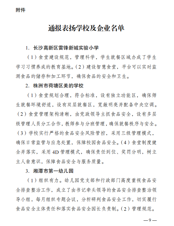 (撰稿 聂奕勋)2024年4月16日我校收到湖南省食品安全委员会文件《关于校园食品安全排查整治专项行动交叉检查的通报》,通报中对我校“积极畅通投诉与建议渠道”、“引入学生团体齐抓共管食品安全”等举措提出了表扬。